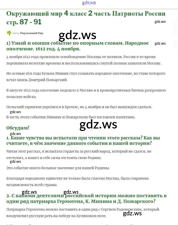 Готовый и полный ответ к Страницы истории России Часть 2 - Окружающему миру 4 класс Плешаков Учебник Школа России ФГОС