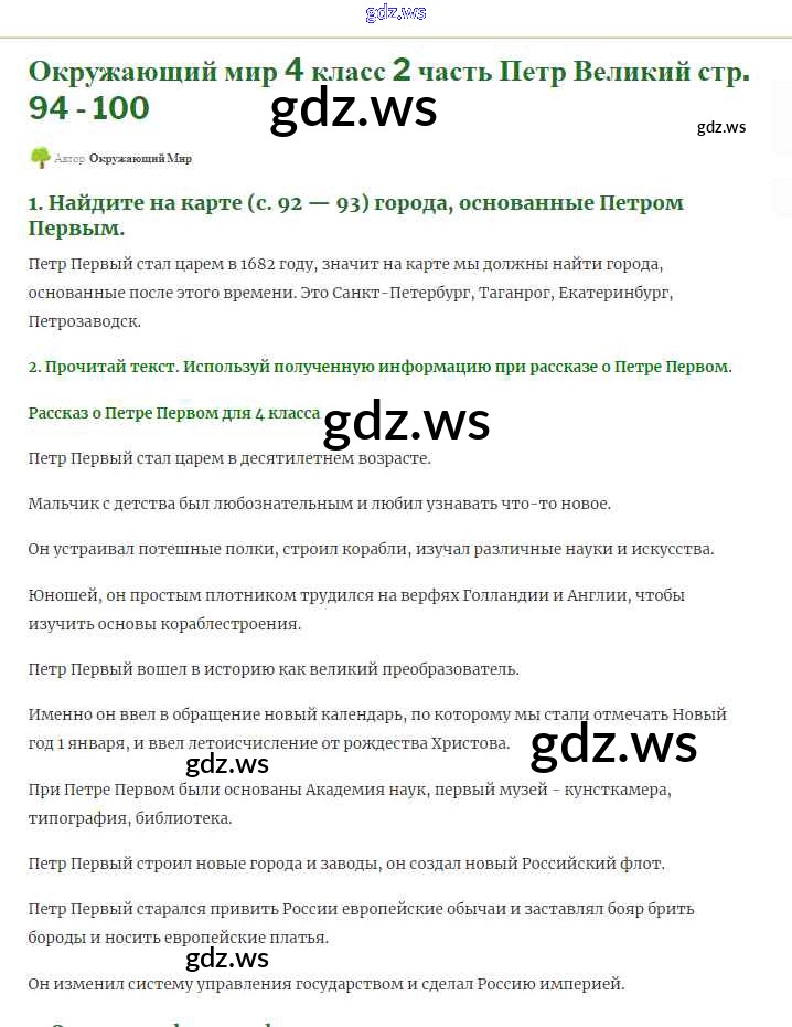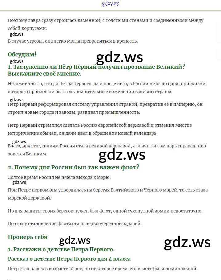 Готовый и полный ответ к Страницы истории России Часть 2 - Окружающему миру 4 класс Плешаков Учебник Школа России ФГОС
