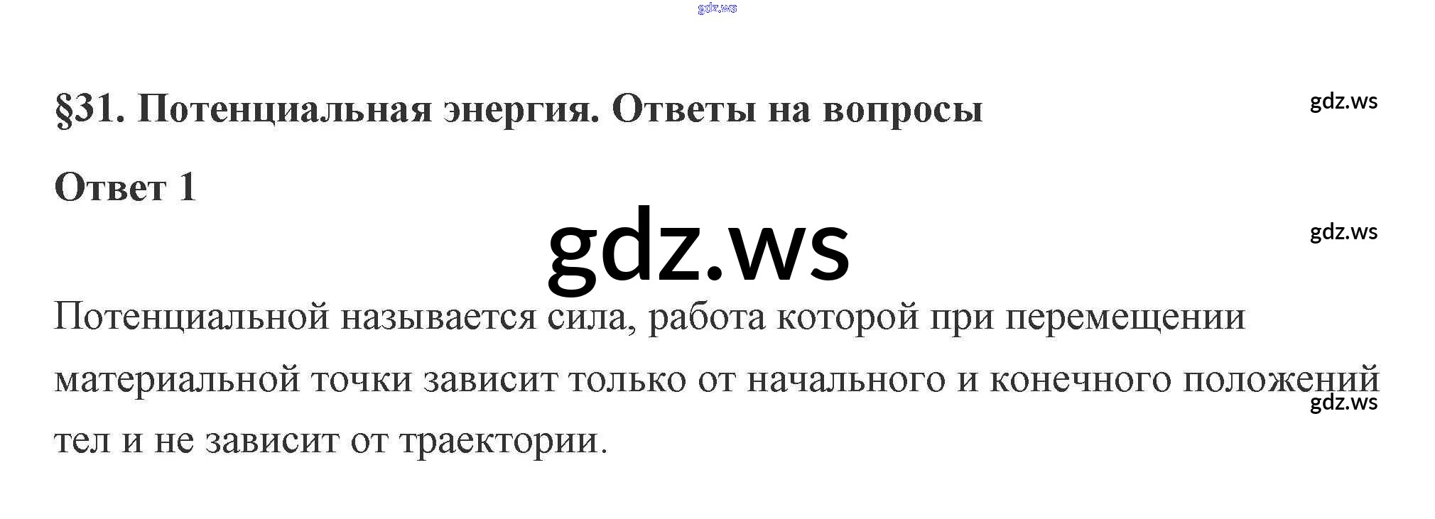 Готовый и полный ответ к 31. Потенциальная энергия 4. Законы сохранения - Физике 10 класс Касьянов Учебник ФГОС