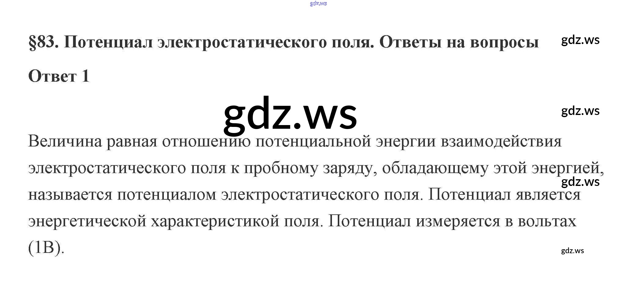 Готовый ответ 83. Потенциал электростатического поля 14. Энергия электромагнитного взаимодействия неподвижных зарядов - Физике 10 класс Касьянов Учебник ФГОС
