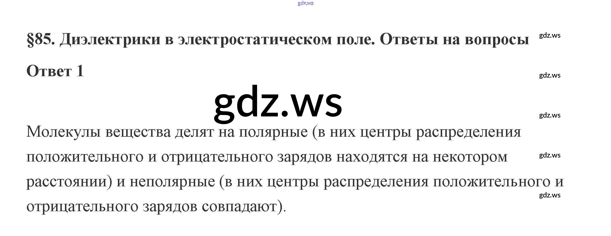 Готовый ответ 85. Диэлектрики в электростатическом поле 14. Энергия электромагнитного взаимодействия неподвижных зарядов - Физике 10 класс Касьянов Учебник ФГОС