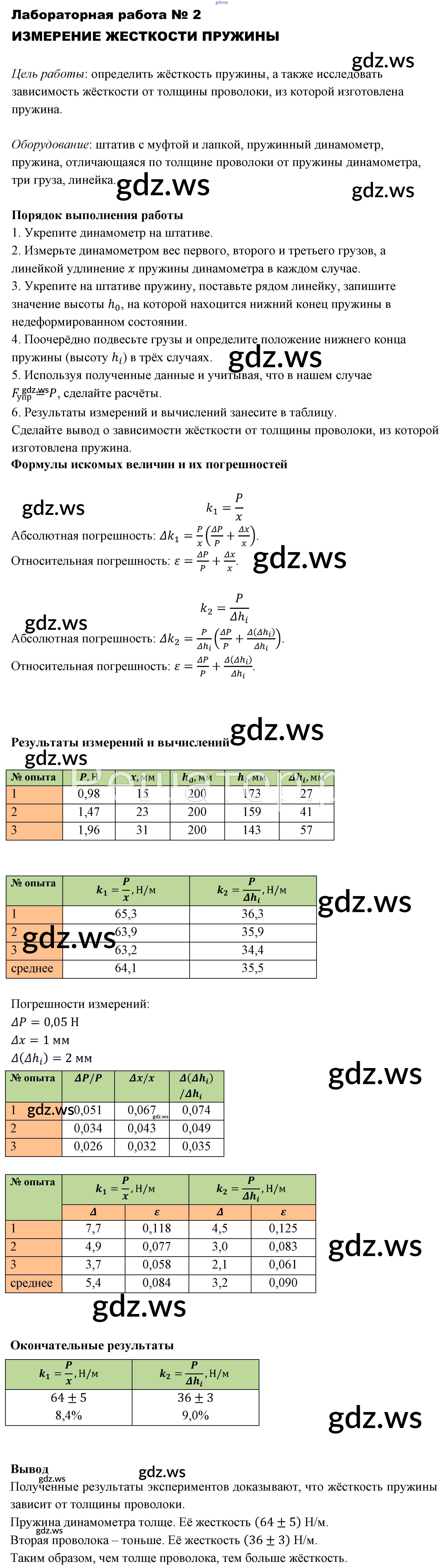 Готовый и полный ответ к Лабораторные работы - Физике 10 класс Мякишев Учебник Базовый уровень