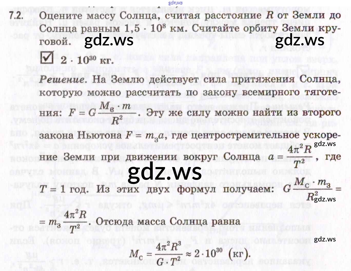 Готовый ответ 7. Закон всемирного тяготения. Сила тяжести и вес тела - Физике 11 класс Гельфгат Задачник Профильный уровень