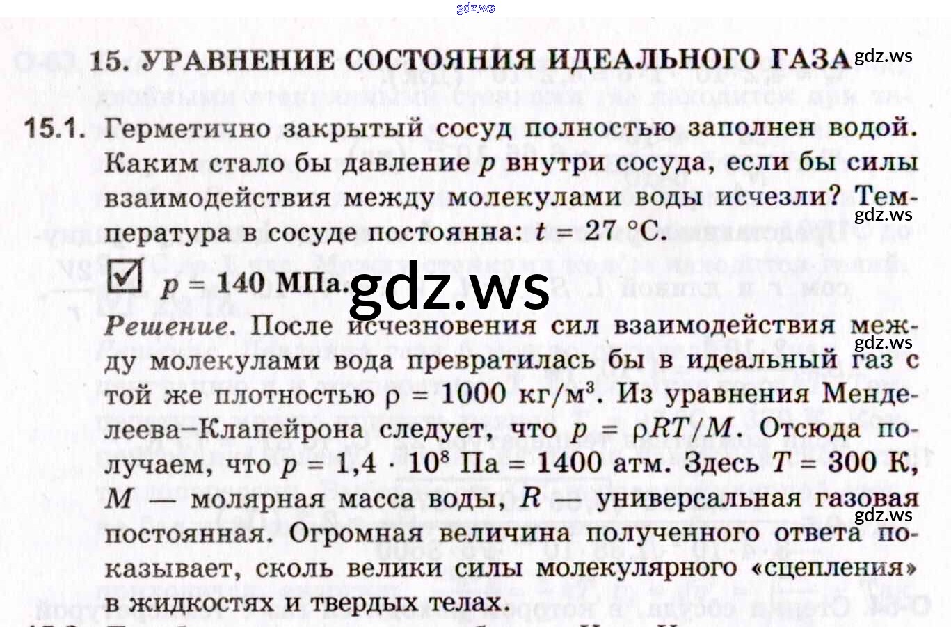 Готовый ответ 15. Уравнение состояния идеального газа - Физике 11 класс Гельфгат Задачник Профильный уровень