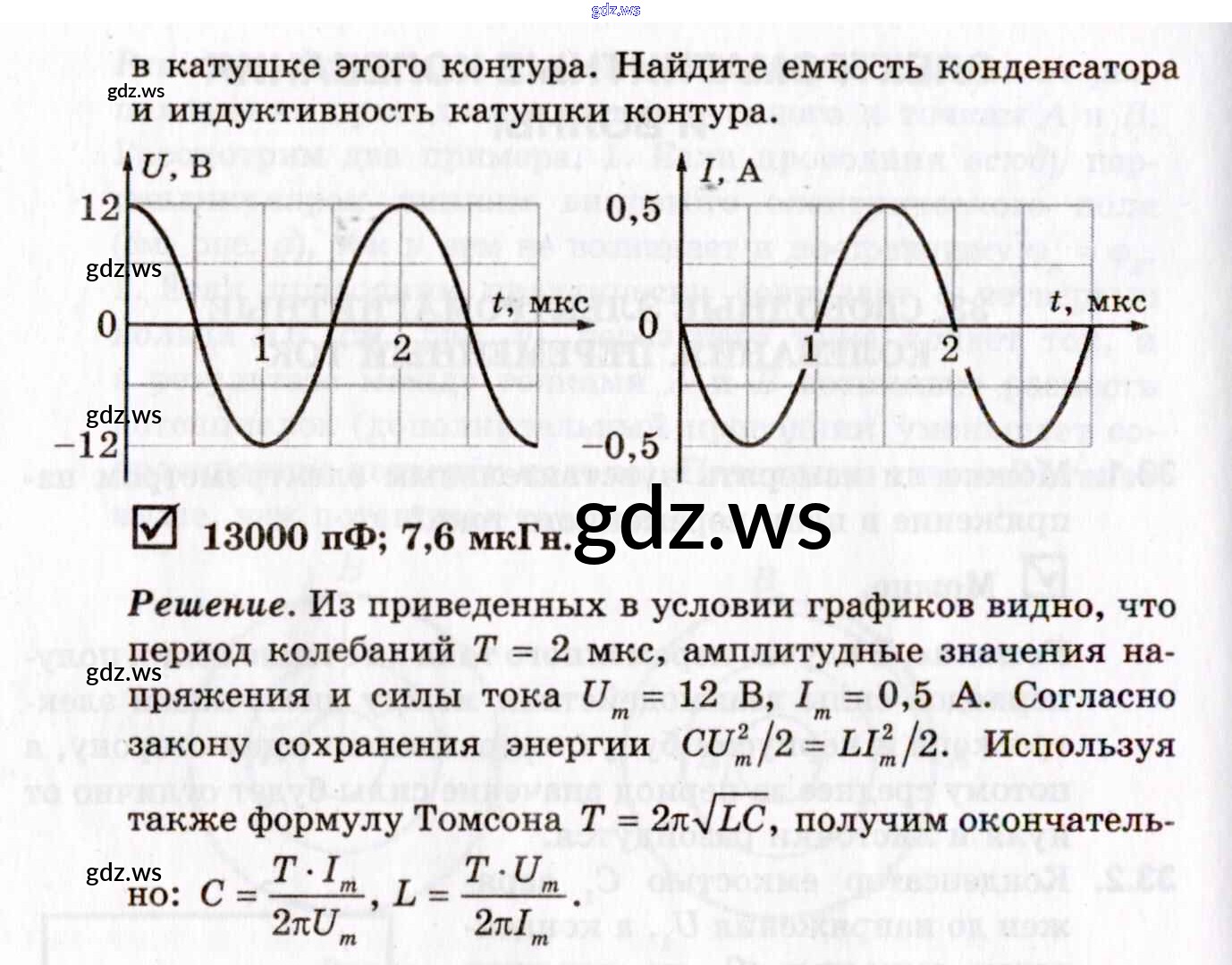 Готовый ответ 33. Свободные электромагнитные колебания. Переменный ток - Физике 11 класс Гельфгат Задачник Профильный уровень