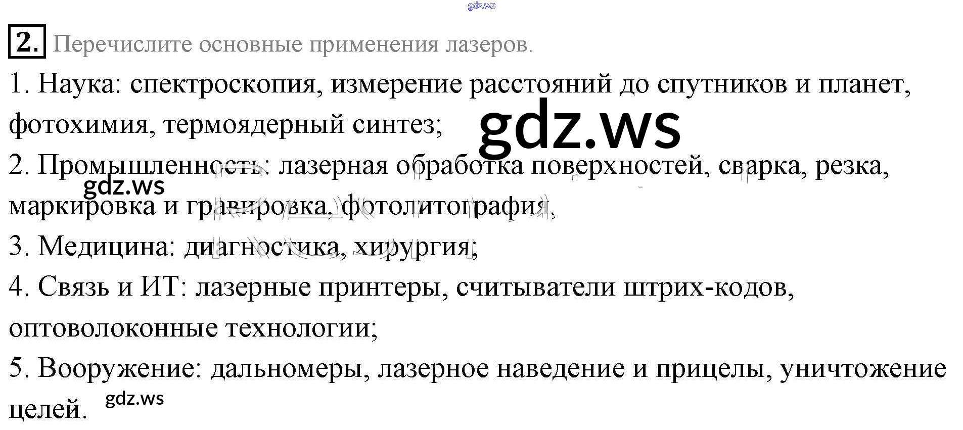 Готовый и полный ответ к Вопросы к параграфу §76. Лазеры - Физике 11 класс Мякишев Учебник Базовый уровень ФГОС