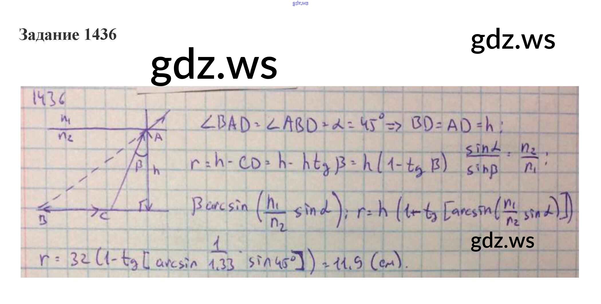 геометрическая оптика / 59. преломление света. закон преломления. полное отражение / 1436