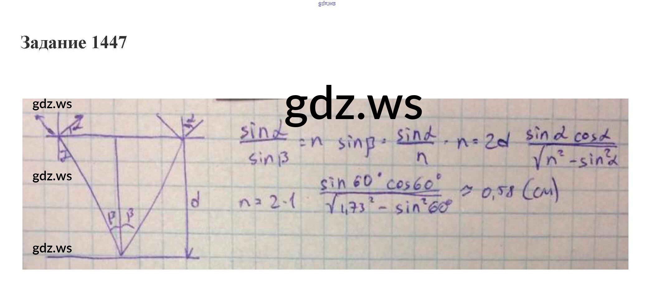 геометрическая оптика / 59. преломление света. закон преломления. полное отражение / 1447