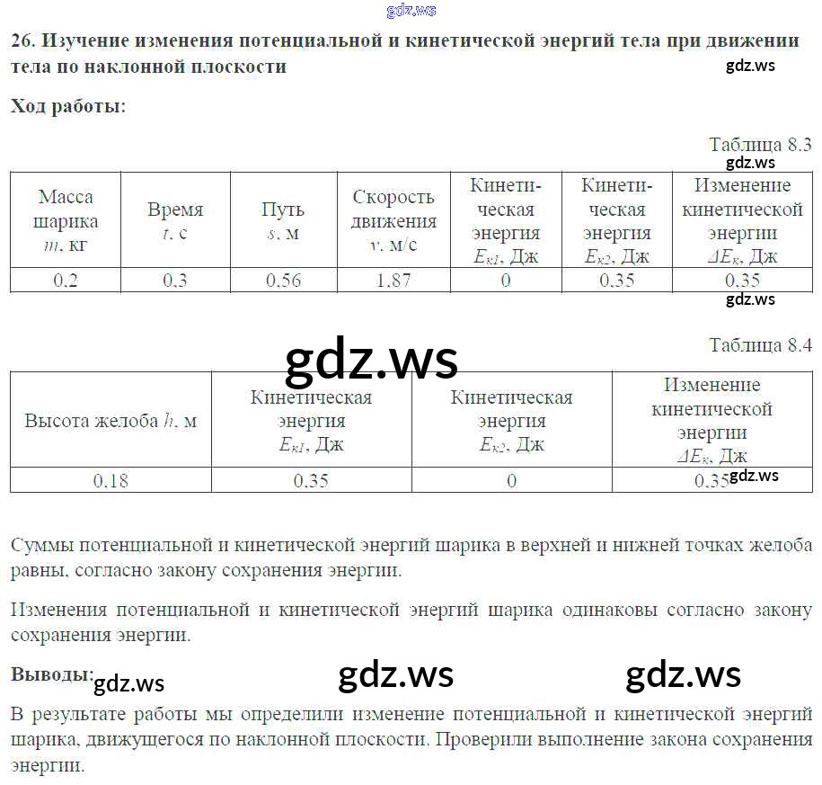 ЛР / №26. Изучение изменения потенциальной и кинетической энергии тела при движении тела по наклонной плоскости