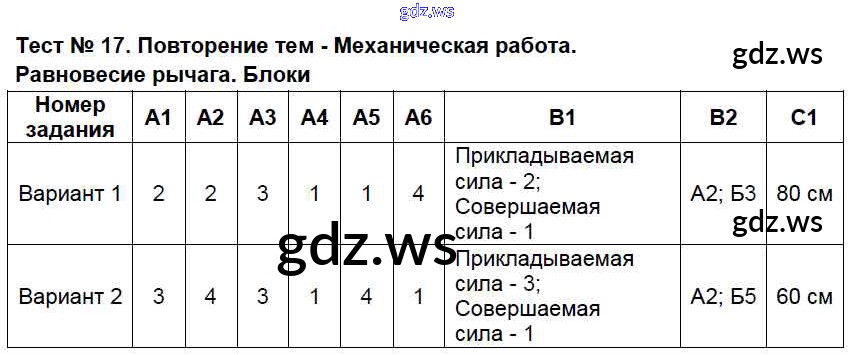 Тест №17. Повторение тем - Механическая работа. Равновесие рычага. Блоки