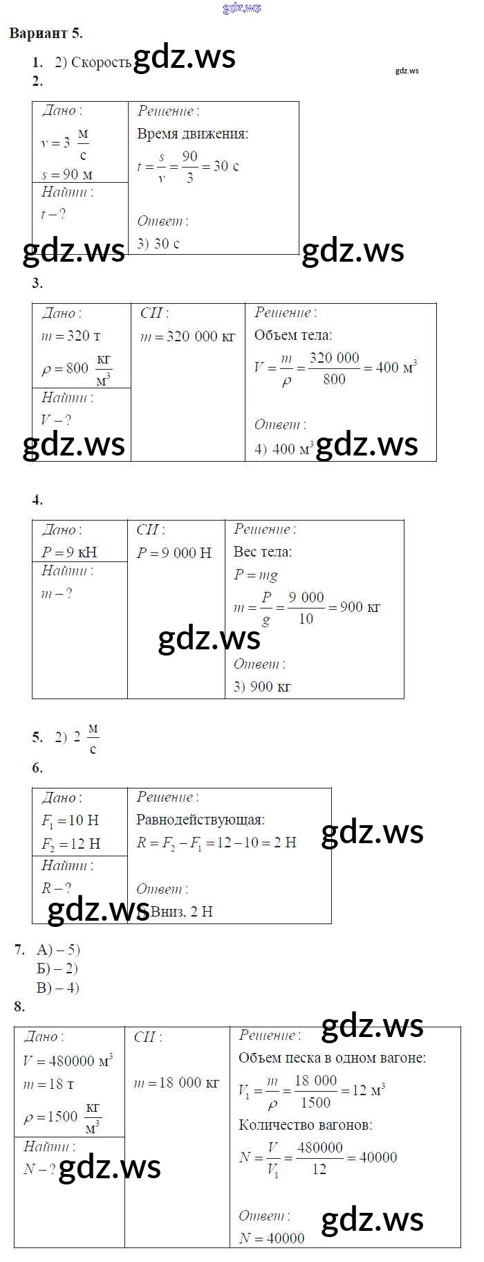 Готовый и полный ответ к Глава 2. Взаимодействие тел Контрольные работы - Физике 7 класс Громцева Контрольные и самостоятельные работы УМК ФГОС