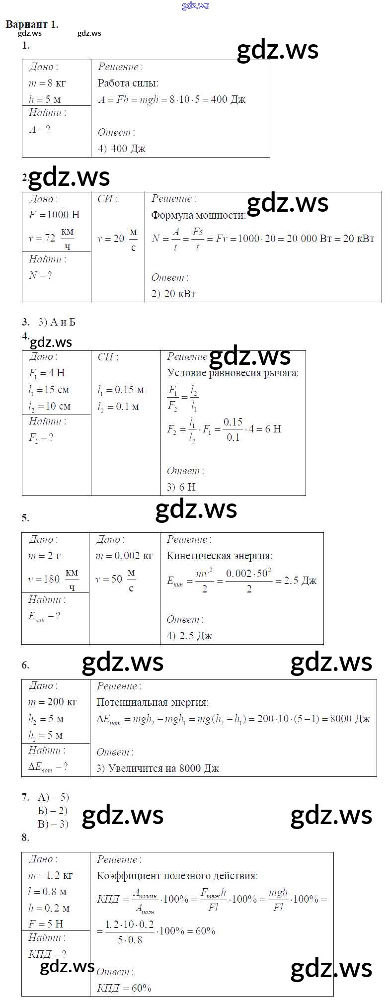 Готовый и полный ответ к Глава 4. Работа и мощность. Энергия Контрольные работы - Физике 7 класс Громцева Контрольные и самостоятельные работы УМК ФГОС