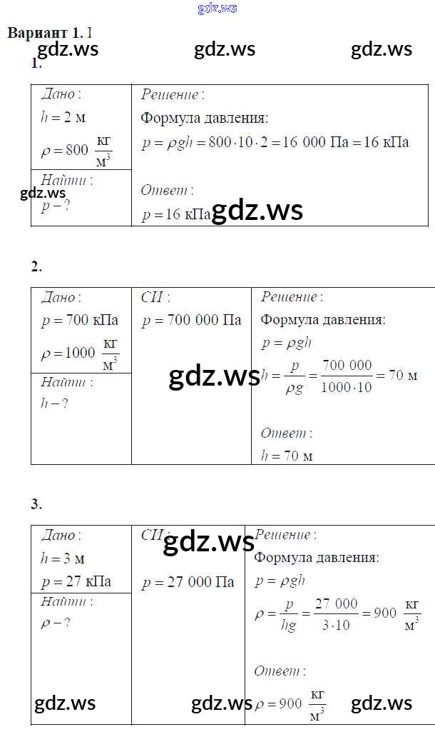 Готовый ответ СР №29. Расчет давления жидкости на дно и стенки сосуда Самостоятельные работы - Физике 7 класс Громцева Контрольные и самостоятельные работы УМК ФГОС