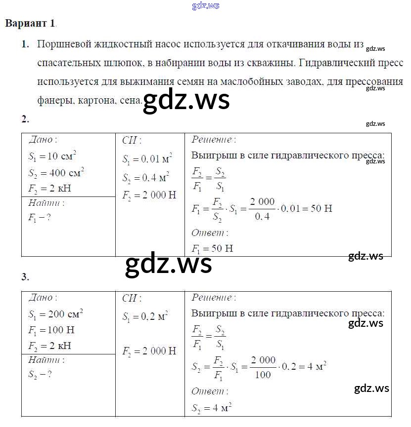 Готовый и полный ответ к СР №34. Поршневой жидкостный насос. Гидравлический пресс Самостоятельные работы - Физике 7 класс Громцева Контрольные и самостоятельные работы УМК ФГОС