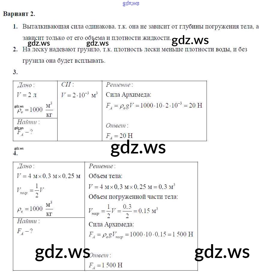 Готовый ответ СР №37. Архимедова сила Самостоятельные работы - Физике 7 класс Громцева Контрольные и самостоятельные работы УМК ФГОС