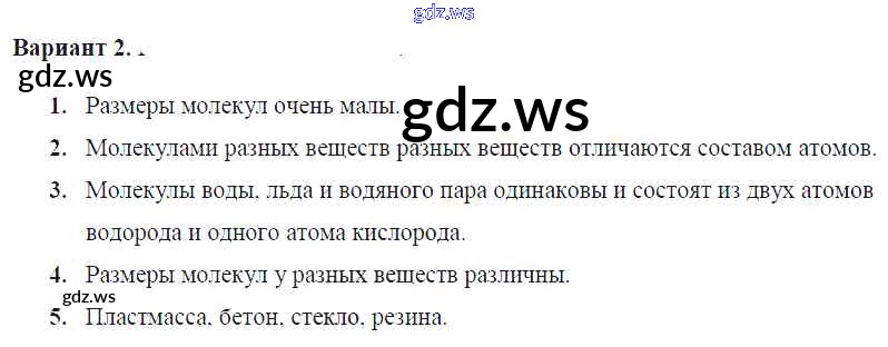 Готовый и полный ответ к СР №6. Молекулы Самостоятельные работы - Физике 7 класс Громцева Контрольные и самостоятельные работы УМК ФГОС