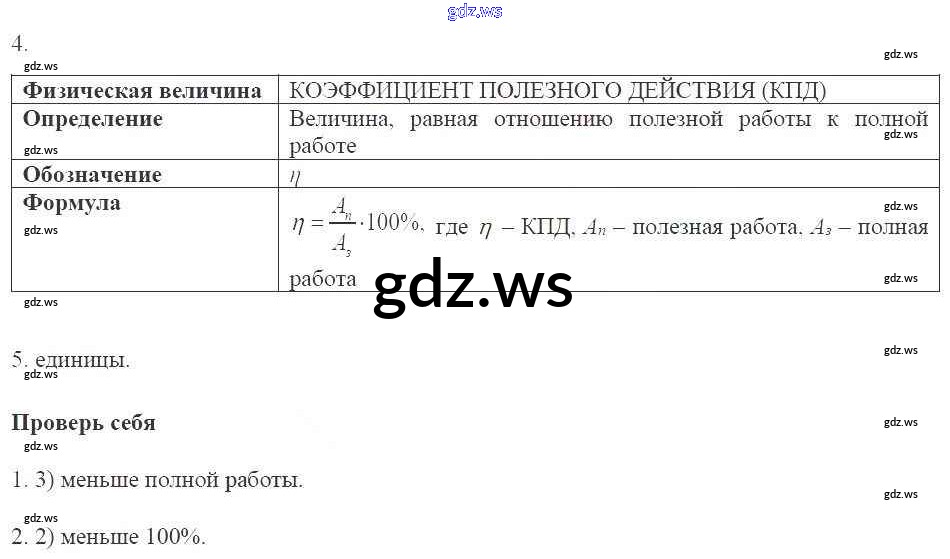 Готовый и полный ответ к Глава 4. Работа и мощность. Энергия - Физике 7 класс Касьянов Рабочая тетрадь Вертикаль ФГОС
