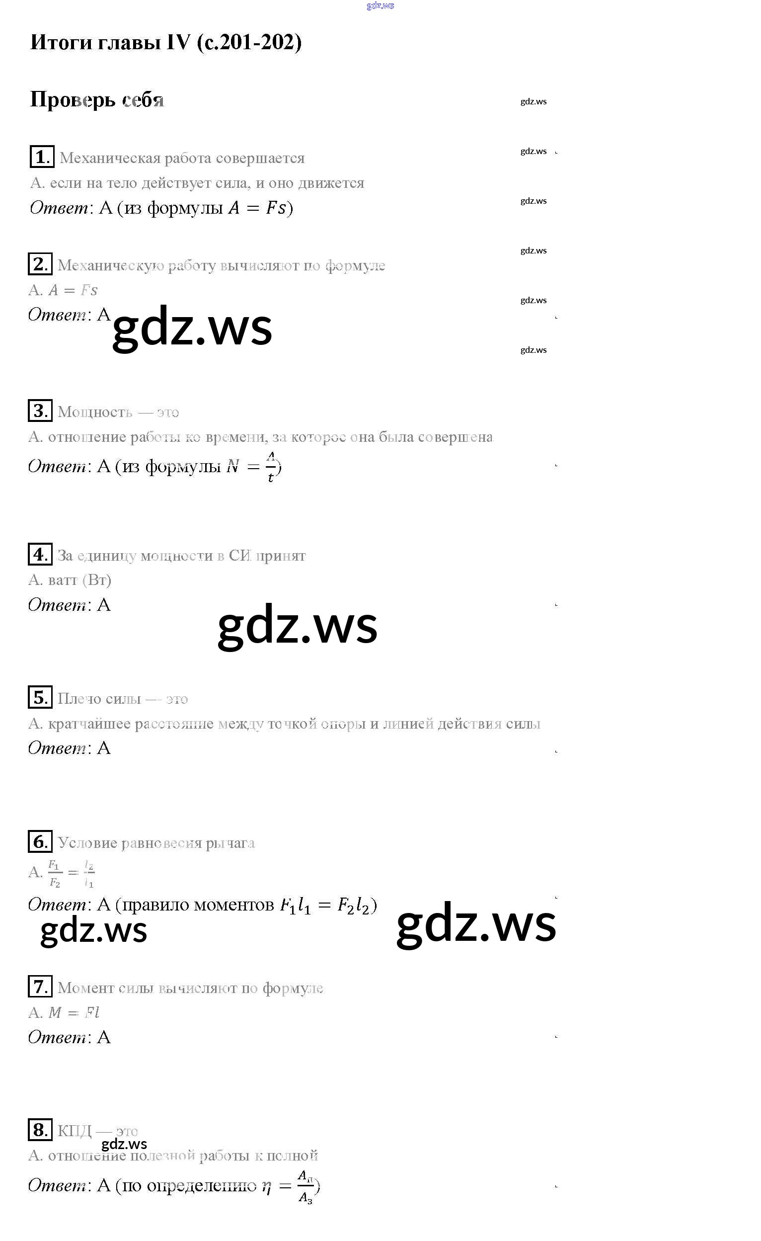 Готовый ответ Проверь себя Новое издание (бело-красный учебник) - Физике 7 класс Перышкин Учебник Вертикаль ФГОС