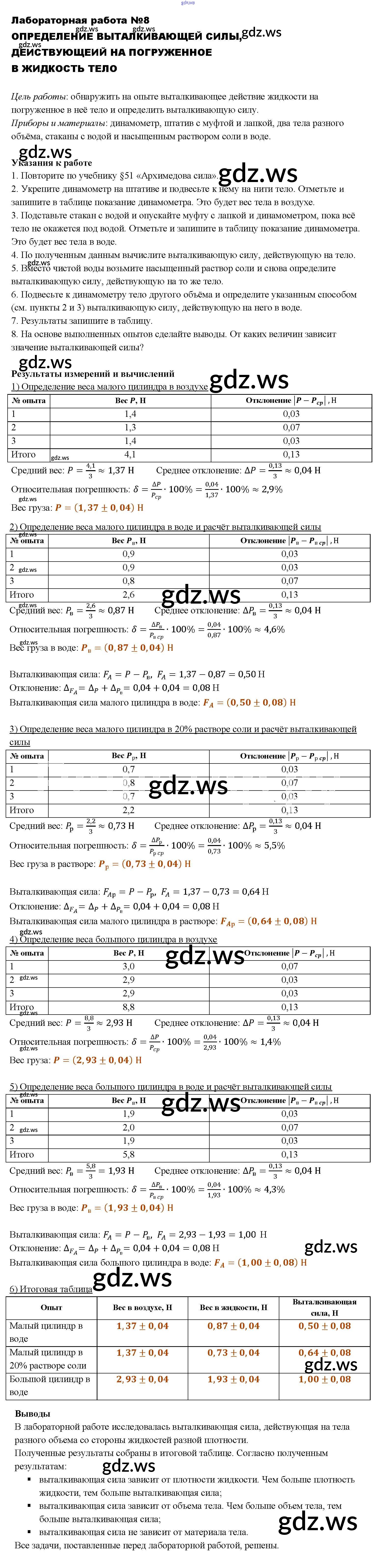 Готовый ответ Лабораторные работы - Физике 7 класс Перышкин Учебник Вертикаль ФГОС
