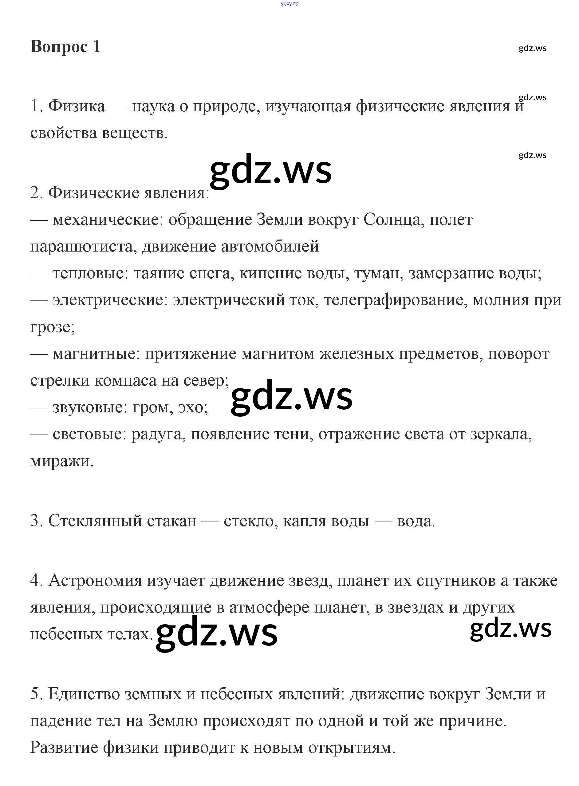 Готовый и полный ответ к Вопросы - Физике 7 класс Пурышева Учебник ФГОС