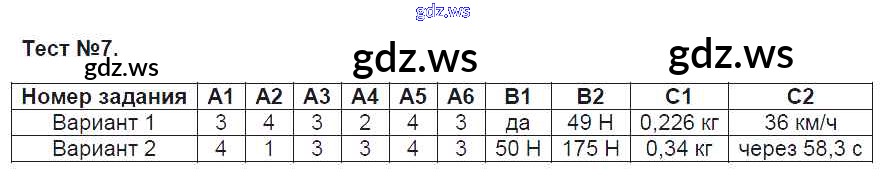 Готовый и полный ответ к Тесты - Физике 7 класс Зорин Контрольно-измерительные материалы (КИМ) ФГОС