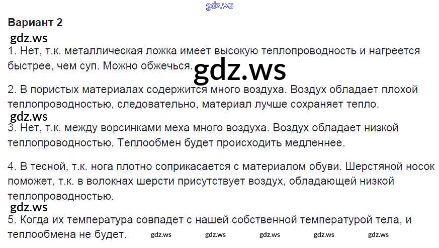 Готовый и полный ответ к СР №3. Теплопроводность Самостоятельные работы - Физике 8 класс Громцева Контрольные и самостоятельные работы УМК ФГОС