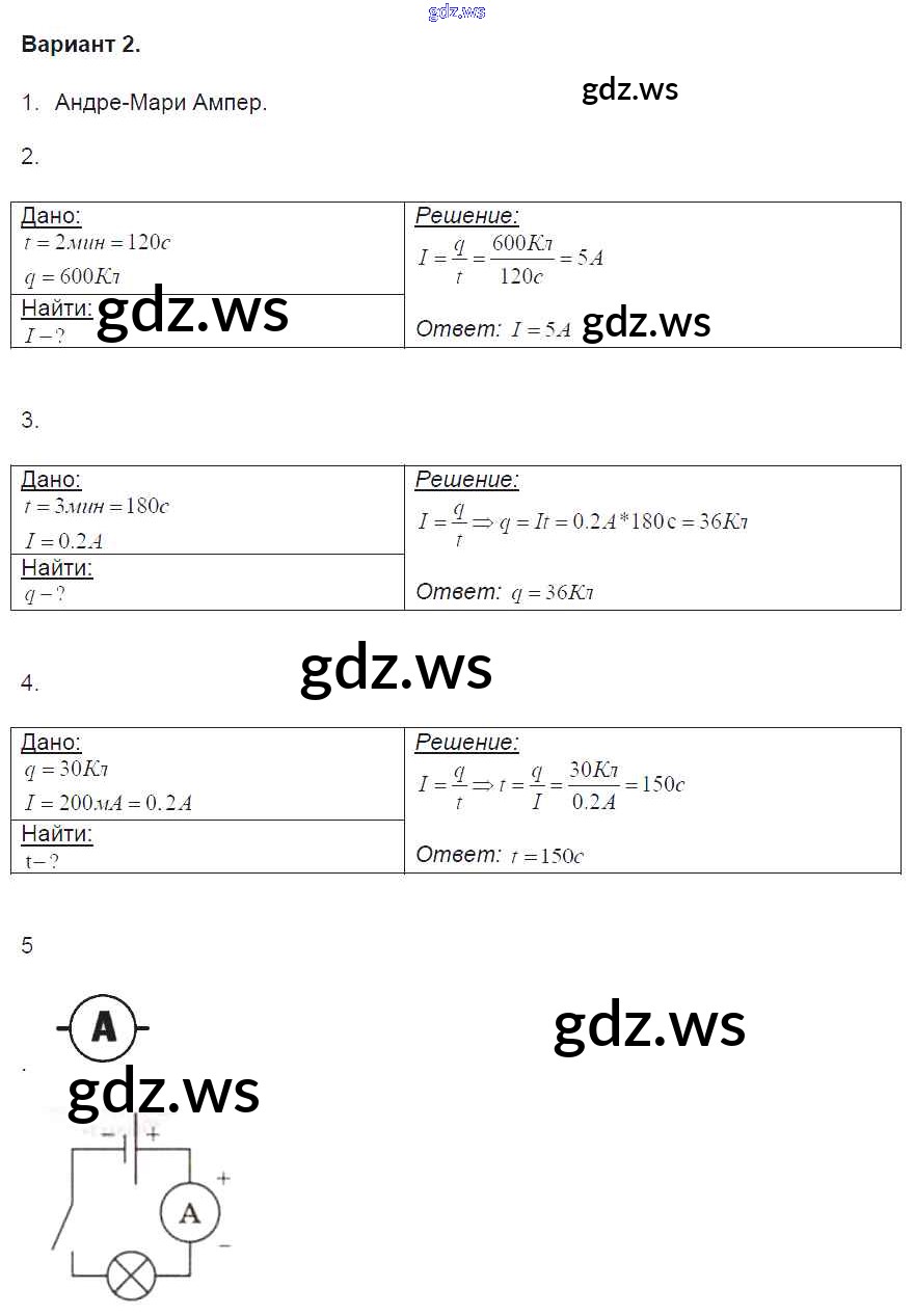 Готовый ответ СР №30. Сила тока. Единицы силы тока. Амперметр. Измерение силы тока Самостоятельные работы - Физике 8 класс Громцева Контрольные и самостоятельные работы УМК ФГОС