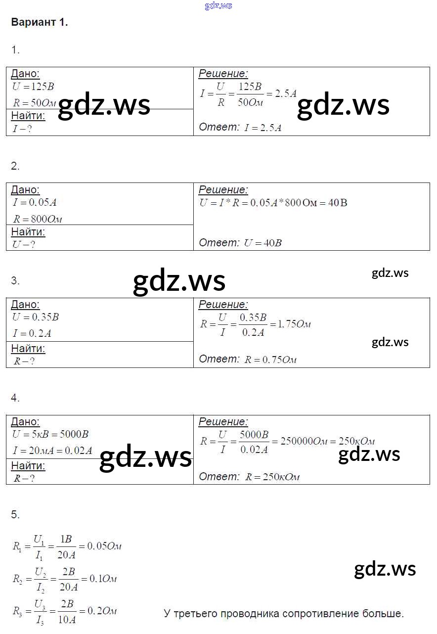 Готовый ответ СР №33. Закон Ома для участка цепи Самостоятельные работы - Физике 8 класс Громцева Контрольные и самостоятельные работы УМК ФГОС