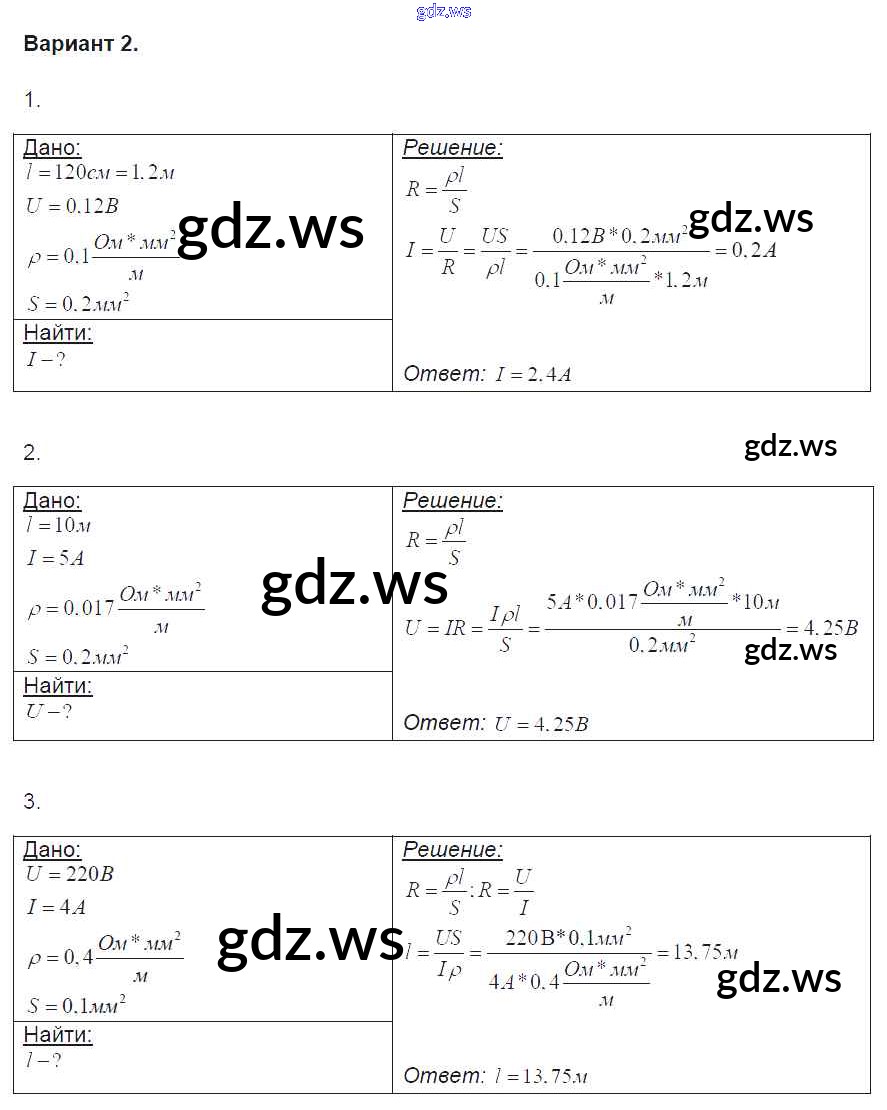 Готовый и полный ответ к СР №34. Примеры на расчет сопротивления проводник, силы тока и напряжения. Реостаты Самостоятельные работы - Физике 8 класс Громцева Контрольные и самостоятельные работы УМК ФГОС
