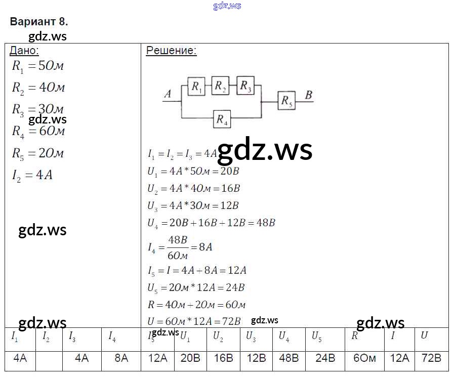 Готовый и полный ответ к СР №36. Расчет электрических цепей Самостоятельные работы - Физике 8 класс Громцева Контрольные и самостоятельные работы УМК ФГОС