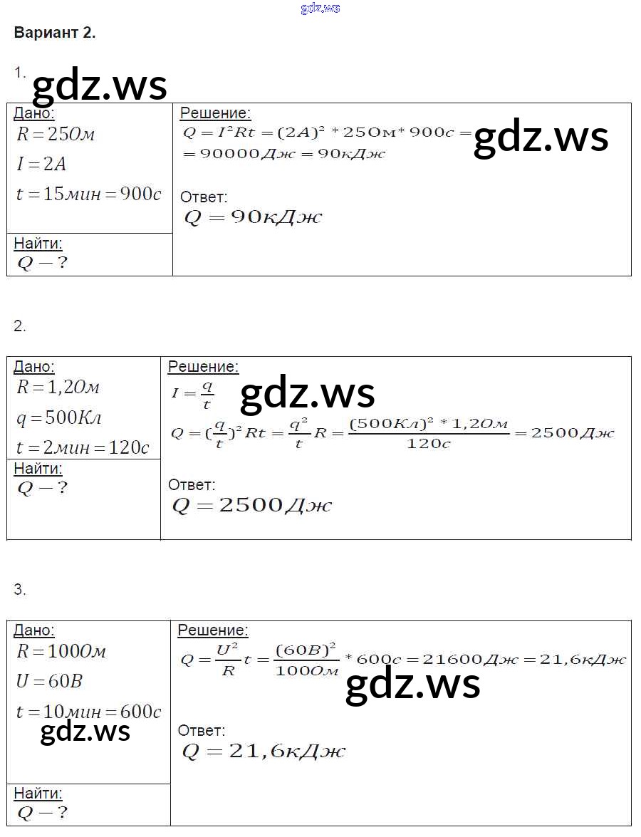 Готовый и полный ответ к СР №38. Нагревание проводников электрическим током. Закон Джоуля-Ленца Самостоятельные работы - Физике 8 класс Громцева Контрольные и самостоятельные работы УМК ФГОС