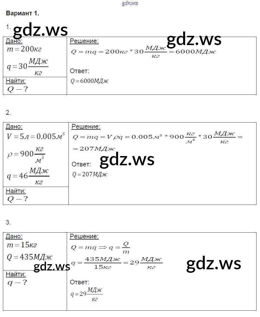 Готовый и полный ответ к СР №8. Энергия топлива. Удельная теплота сгорания Самостоятельные работы - Физике 8 класс Громцева Контрольные и самостоятельные работы УМК ФГОС