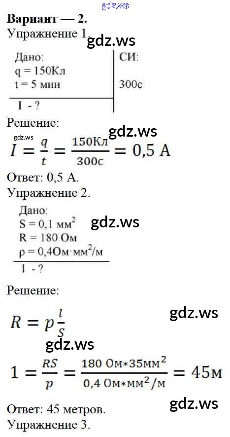 Готовый и полный ответ к СР №8. Сила тока. Напряжение. Закон Ома для участка цепи Варианты Самостоятельные работы - Физике 8 класс Марон Дидактические материалы Вертикаль ФГОС