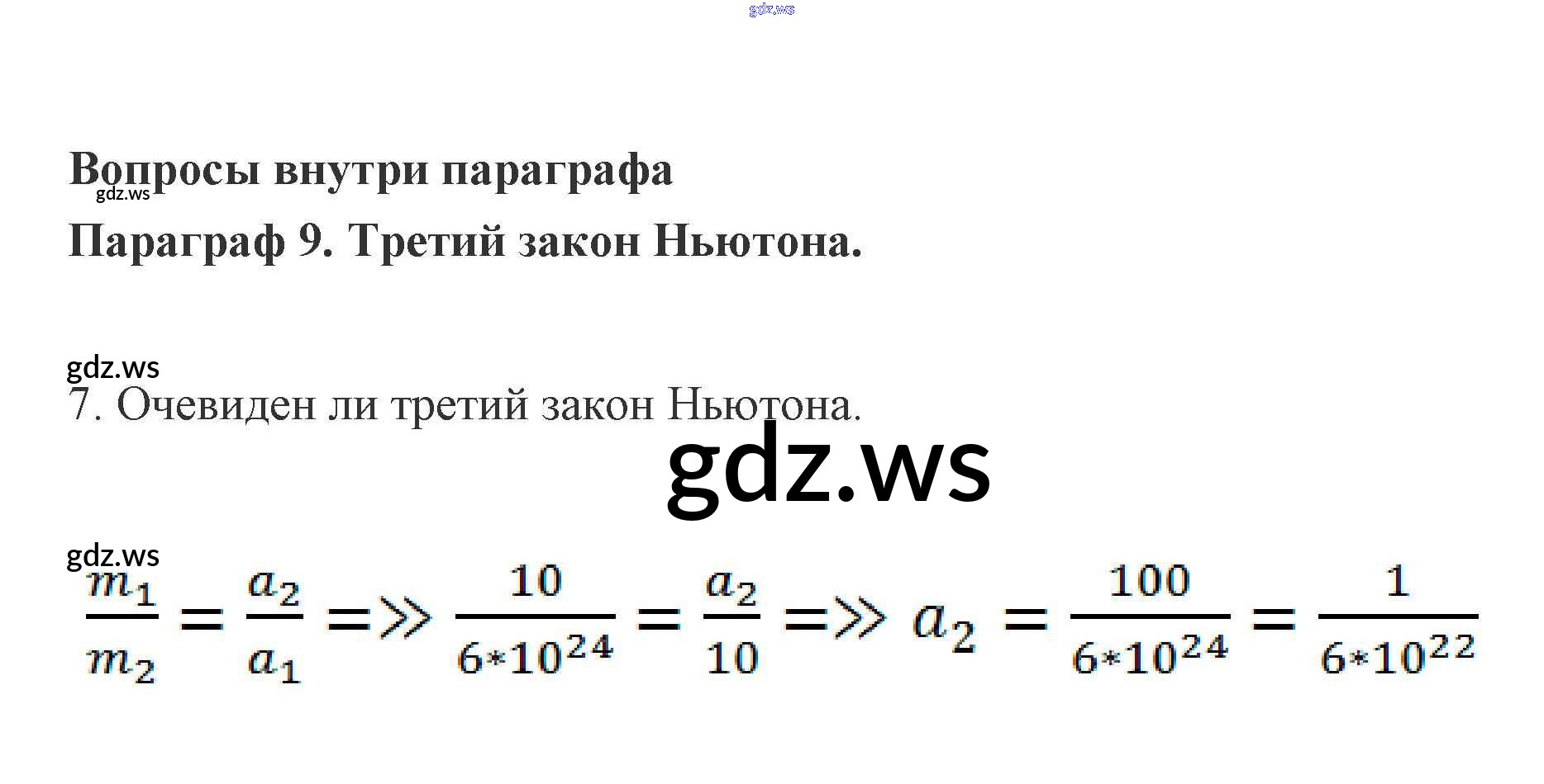 Готовый и полный ответ к Вопросы 9. Третий закон Ньютона - Физике 9 класс Генденштейн Учебник ФГОС