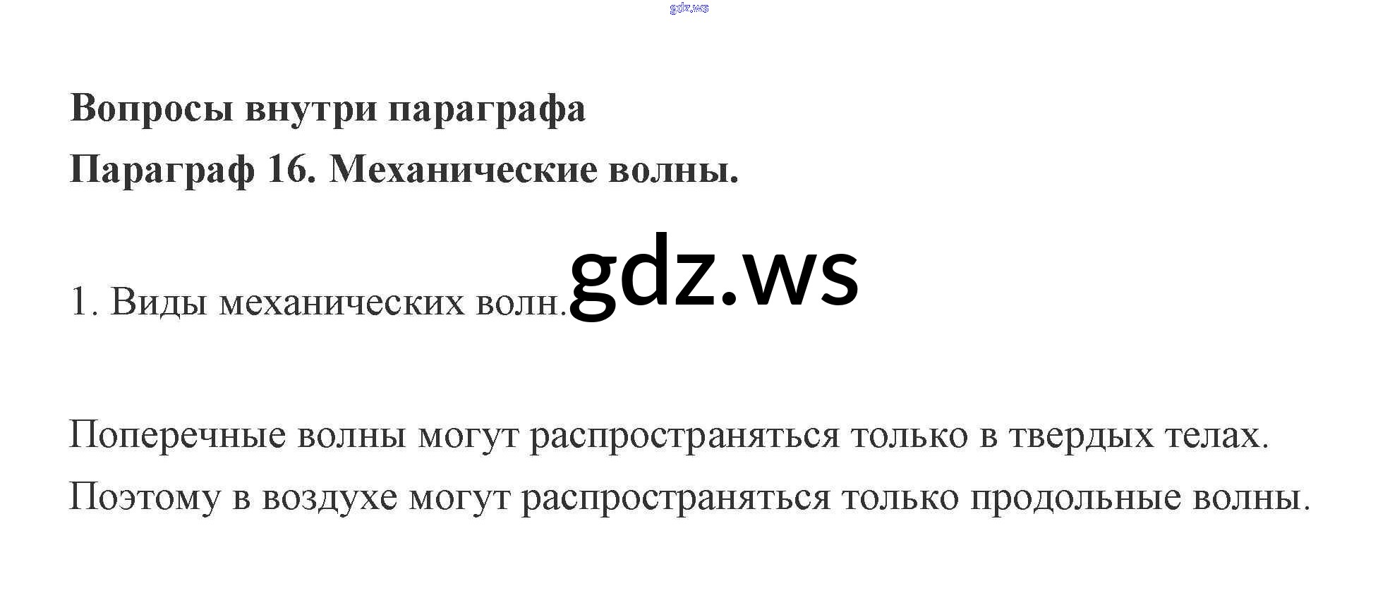 Готовый и полный ответ к Вопросы 16. Механические волны - Физике 9 класс Генденштейн Учебник ФГОС