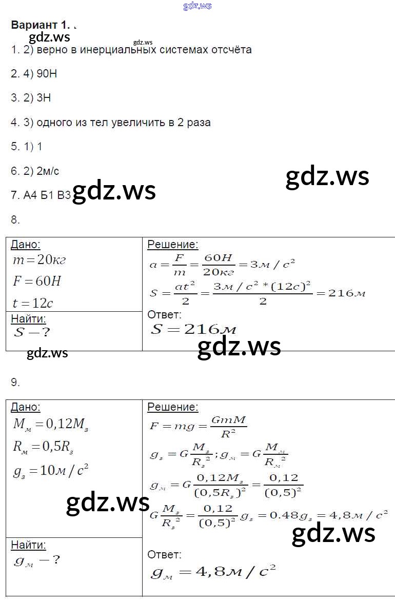 Готовый и полный ответ к 1. Варианты Глава 1 - Физике 9 класс Громцева Контрольные и самостоятельные работы УМК ФГОС