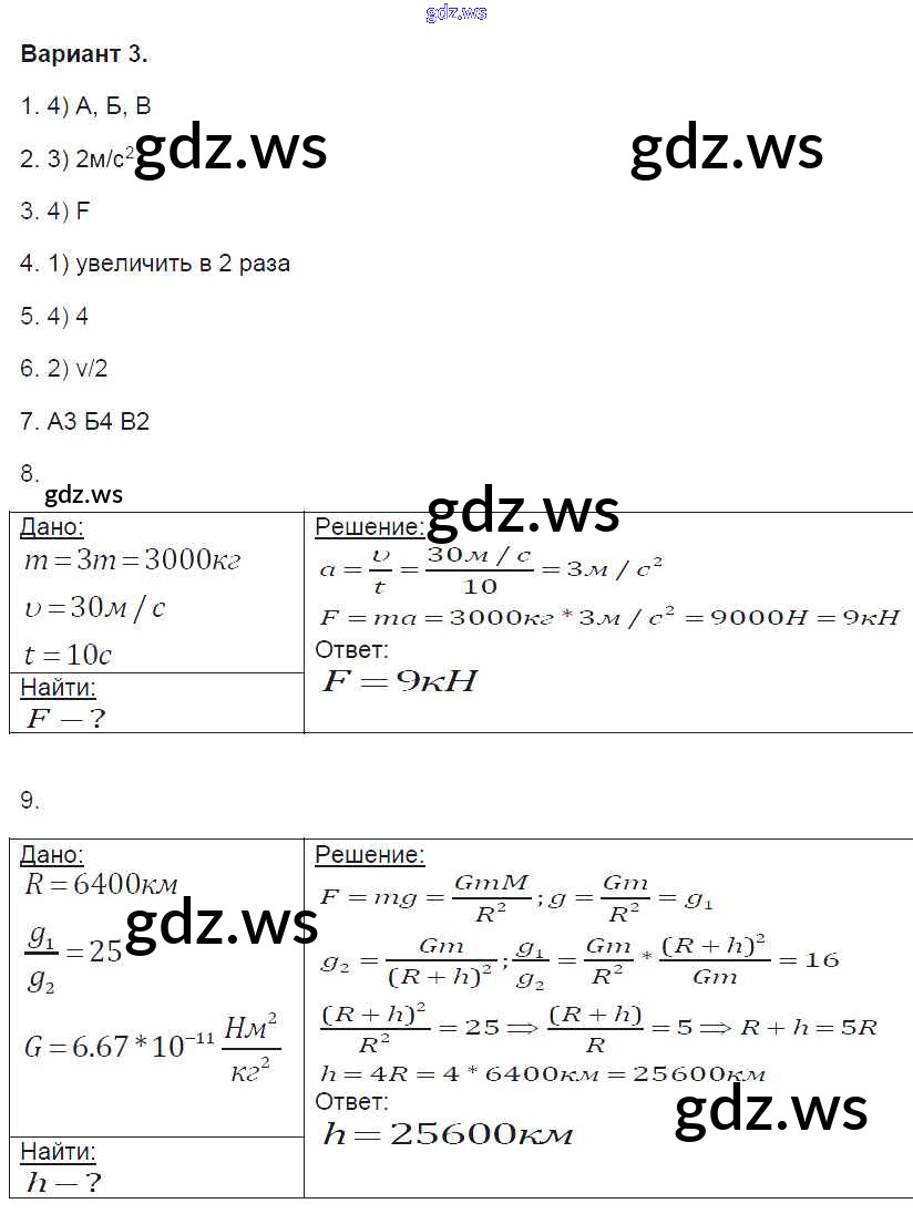 Готовый и полный ответ к 1. Варианты Глава 1 - Физике 9 класс Громцева Контрольные и самостоятельные работы УМК ФГОС