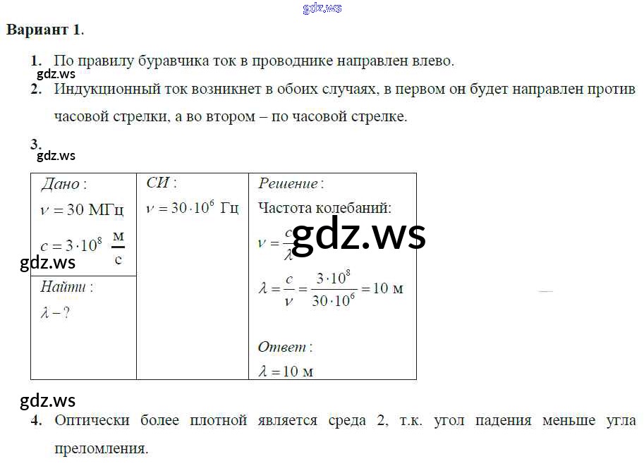 Готовый и полный ответ к КР-3. Варианты Контрольные работы - Физике 9 класс Марон Самостоятельные и контрольные работы УМК ФГОС