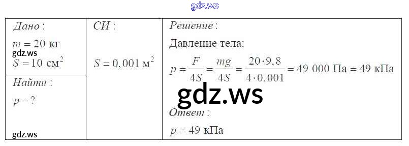 Готовый и полный ответ к Давление твердых тел, жидкостей и газов 7 класс - Физике 9 класс Перышкин Сборник задач УМК ФГОС