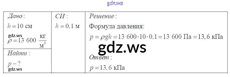 Готовый ответ Давление твердых тел, жидкостей и газов 7 класс - Физике 9 класс Перышкин Сборник задач УМК ФГОС