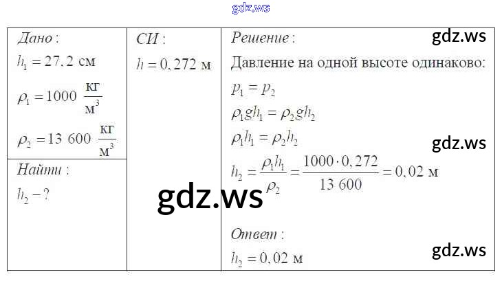 Готовый ответ Давление твердых тел, жидкостей и газов 7 класс - Физике 9 класс Перышкин Сборник задач УМК ФГОС