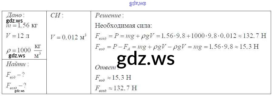 Готовый ответ Давление твердых тел, жидкостей и газов 7 класс - Физике 9 класс Перышкин Сборник задач УМК ФГОС