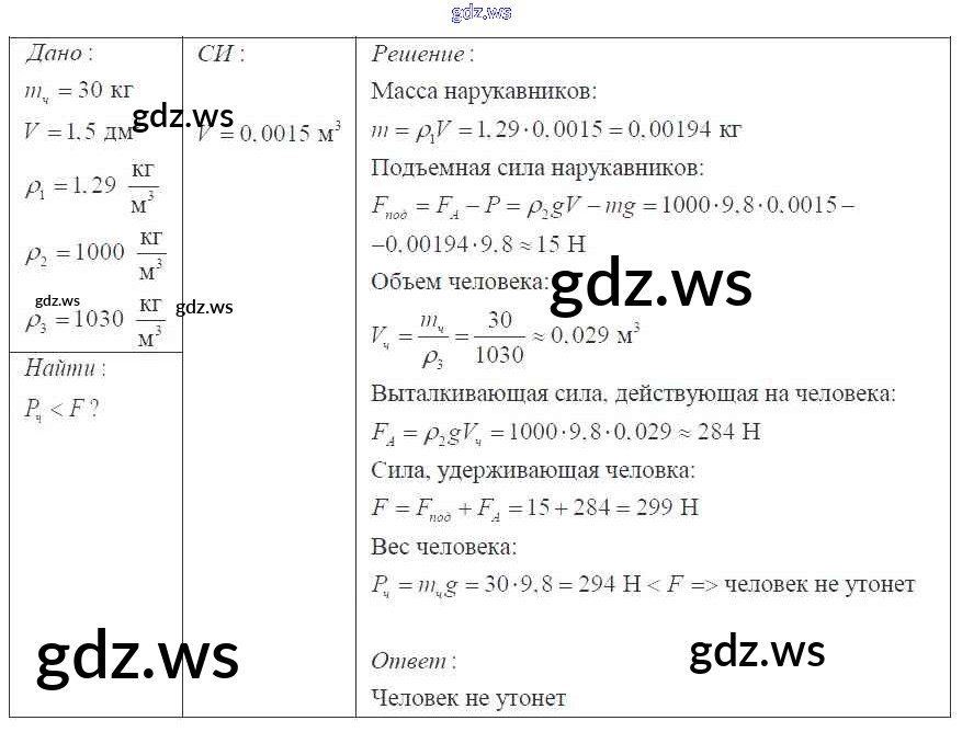 Готовый и полный ответ к Давление твердых тел, жидкостей и газов 7 класс - Физике 9 класс Перышкин Сборник задач УМК ФГОС