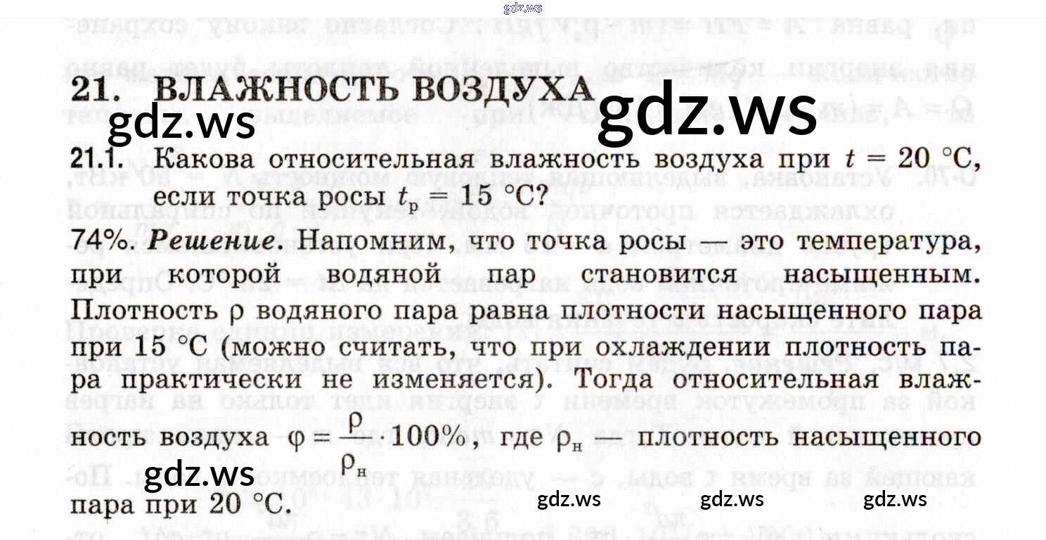 Готовый ответ 21. Влажность воздуха - Физике 9 класс Генденштейн Задачник