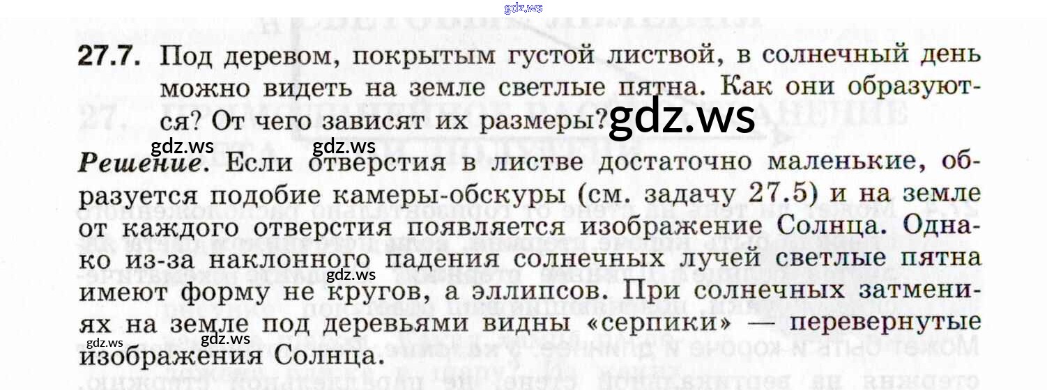 Готовый и полный ответ к 27. Прямолинейное распространение света. Тени, полутени - Физике 9 класс Генденштейн Задачник