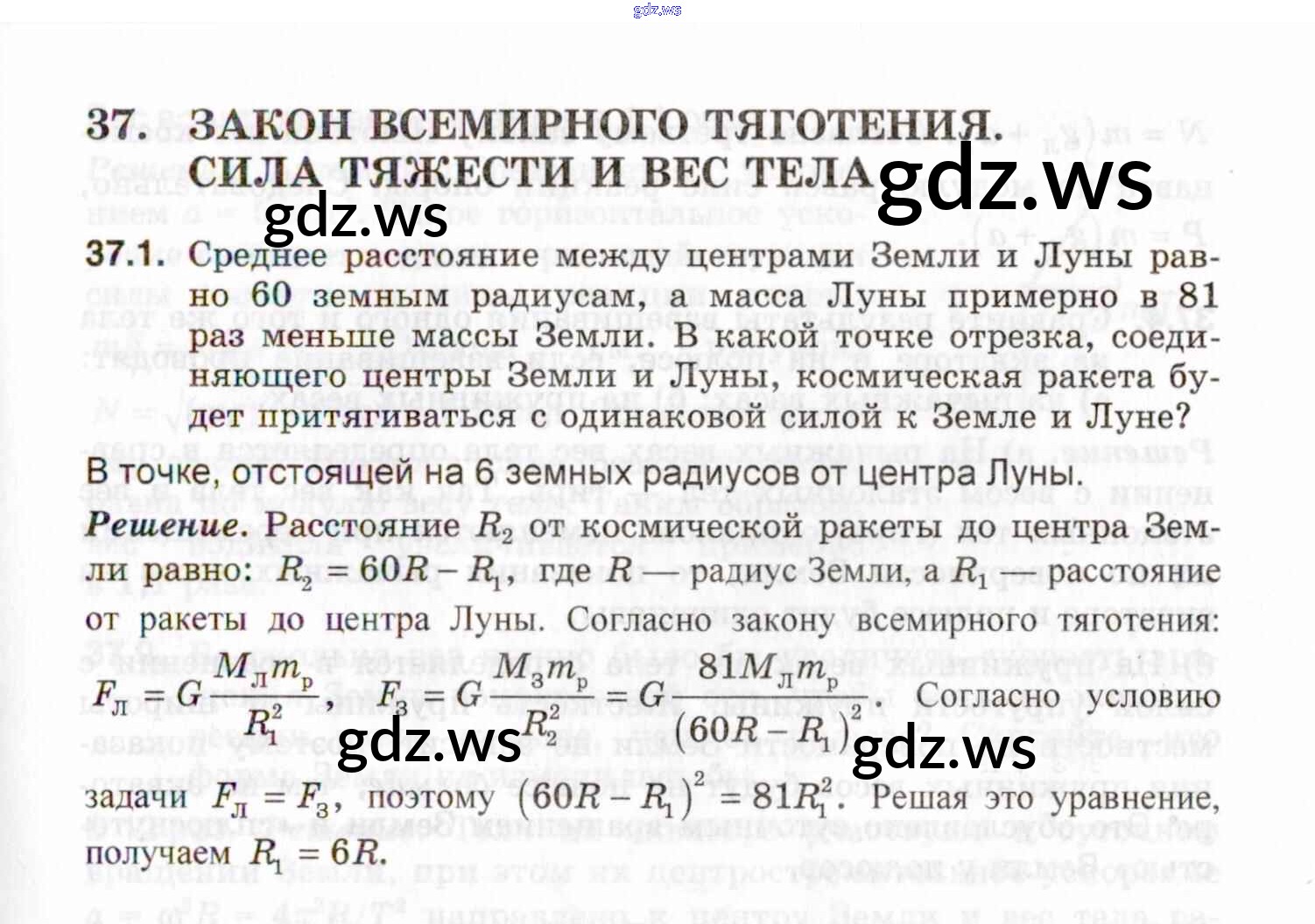 Готовый и полный ответ к 37. Закон всемирного тяготения. Сила тяжести и вес тела - Физике 9 класс Генденштейн Задачник