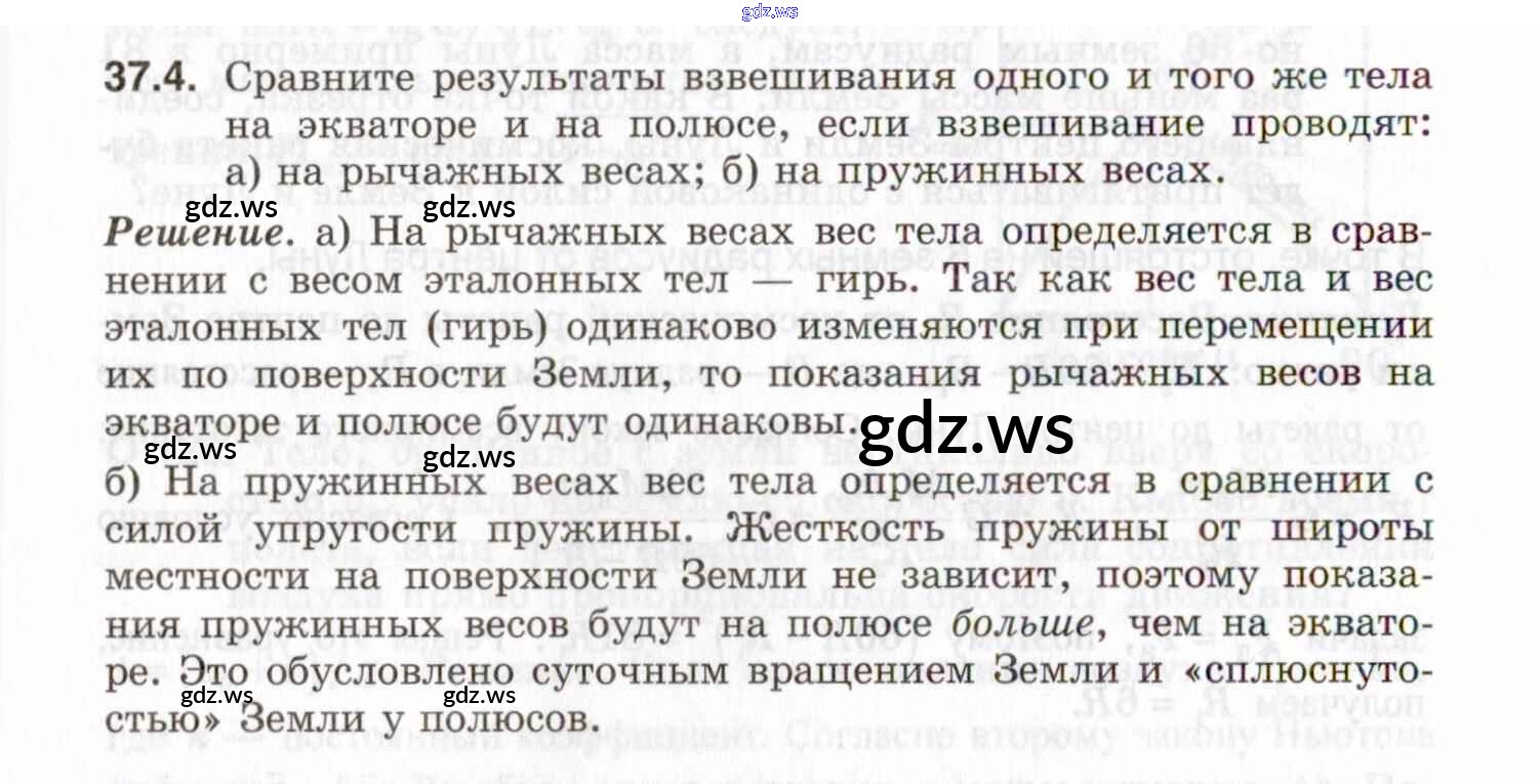 Готовый и полный ответ к 37. Закон всемирного тяготения. Сила тяжести и вес тела - Физике 9 класс Генденштейн Задачник