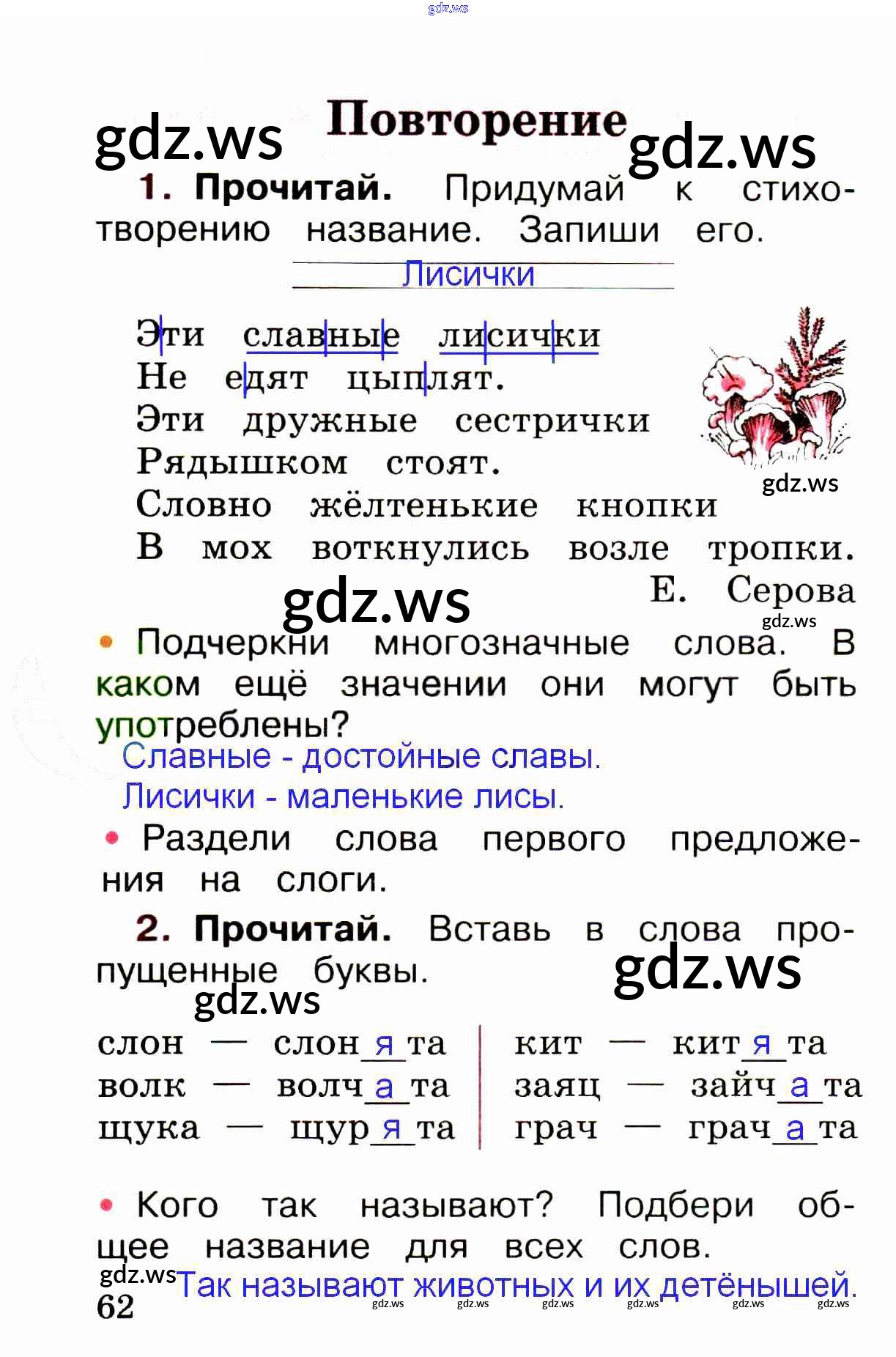 повторение / стр. 62