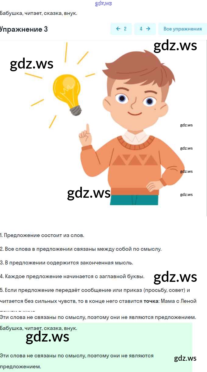 Готовый и полный ответ к Глава 2. Текст, предложение, диалог - Русскому языку 1 класс Канакина Учебник Школа России ФГОС