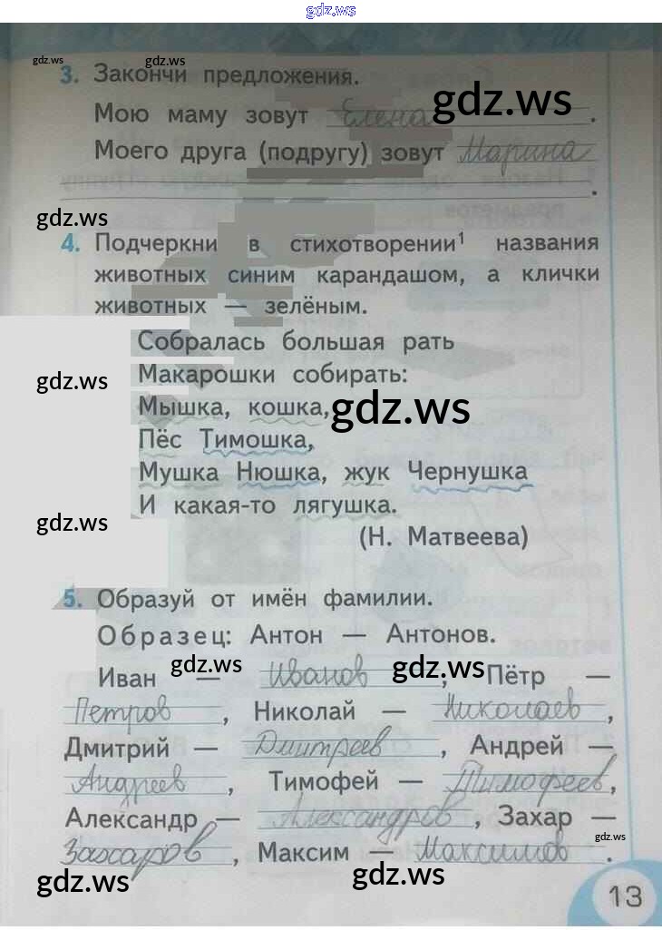 Готовый и полный ответ к Страницы - Русскому языку 1 класс Тихомирова Рабочая тетрадь УМК ФГОС